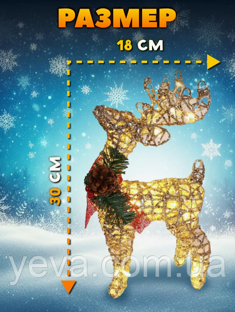 Олень що світиться, 30 см, Новорічний декор для дому, Новорічні прикраси олені, Олень led, Новорічний декор